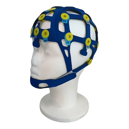 A touca conta com os pontos 10-20 de EEG mais utilizados durante as sessões de TDCS/ETCC, otimizando a sua sessão de uma maneira rápida e prática.